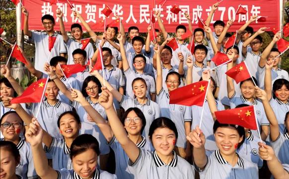 秋分光景,天高雲闊,2019年10月1日,一中師(shī)生以(yǐ)“青春”為名,共祝祖(zǔ)國繁榮昌盛。