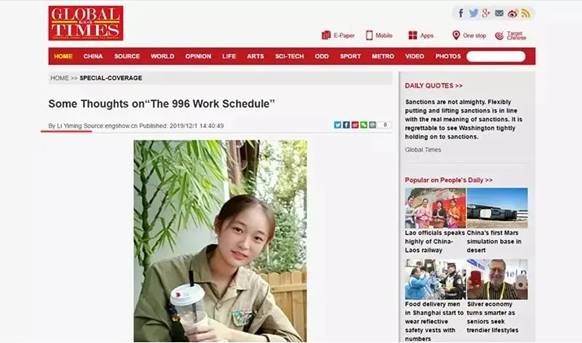 2019年12月,夾河街校區李奕名同學作文登上《環球時報》。