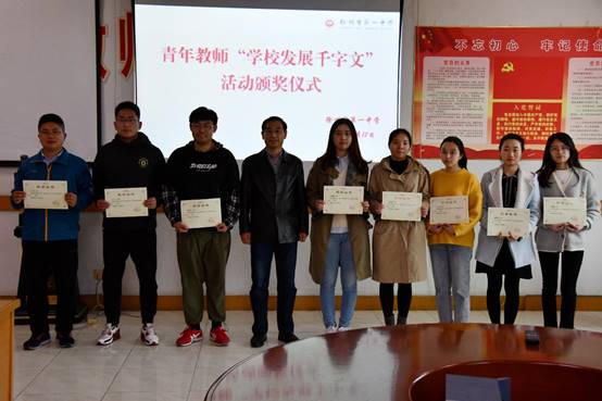 頒獎(jiǎng)儀式開始前,梁繼程(chéng)宣讀了《關於“學校發展千字文”優秀征文表(biǎo)彰(zhāng)的決定》,通告了“學校發展千字文(wén)”活動的(de)舉辦目的、評(píng)選過程和評比結果(guǒ)。張安義代表學校黨委和校長室向獲獎青年頒(bān)發了榮譽證書,並勉勵青年教師潛心教育,主(zhǔ)動(dòng)做事、用心做事(shì)、真心做事(shì),爭取(qǔ)在最(zuì)短時間(jiān)內(nèi)成長為一名教(jiāo)學功底紮實(shí)和專業素養(yǎng)水平高的優秀骨幹教師(shī)。