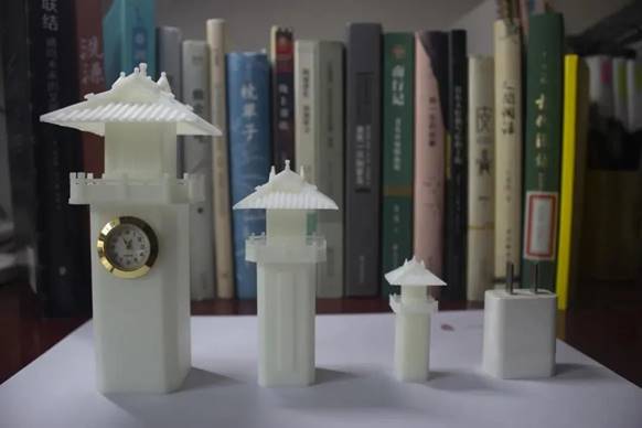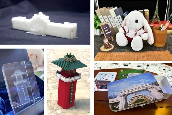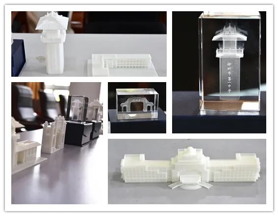 徐州一中文創聯合擷秀極客(kè)工(gōng)作室,設計了3個校區的共計(jì)10個三維立體模型,作品分為3D打印和水晶雕刻兩種類型。