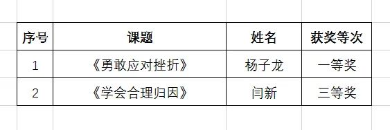 日前,市教育(yù)局公布了市中小學“學科德育課(kè)程”比賽和市中小學心理健康優質課比賽獲獎名單。我校賀(hè)薇等6位(wèi)老師選報的課(kè)題(tí)全部獲獎。向獲獎教師表示祝賀。