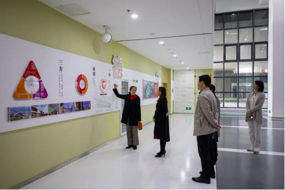 陳青校長向專家組介(jiè)紹學校(xiào)立德力行文(wén)化牆