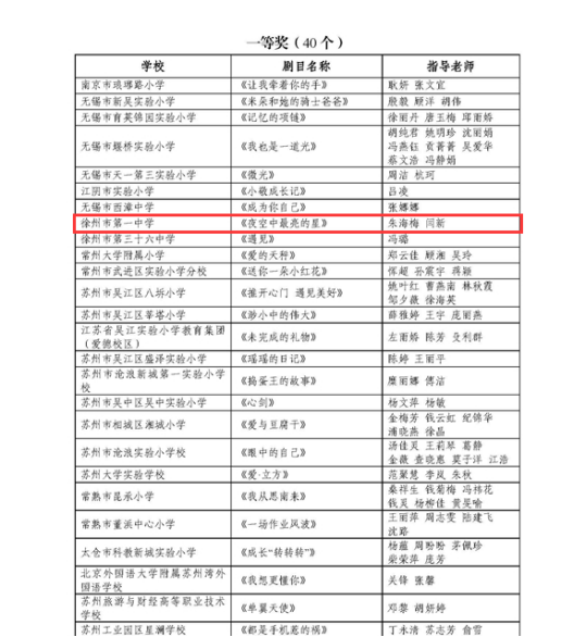 近日,第十一屆江蘇省中小(xiǎo)學“校園(yuán)心理劇”創作活動獲(huò)獎名單公布,本屆活動共保送各類(lèi)作品1086個,經組委會三輪嚴格認(rèn)真推選,共推(tuī)選出優秀劇目228個,由(yóu)我校心理發展(zhǎn)中心選送(sòng)的作(zuò)品《夜空中最亮(liàng)的星》榮(róng)獲一等(děng)獎。