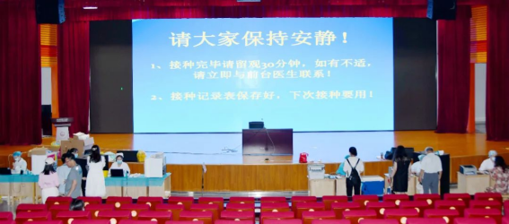 疫苗接種(zhǒng)點設置(zhì)在紫金校區大(dà)禮堂,現場(chǎng)設置候診區、健康申報區、問詢登記(jì)區、接種區、留觀區等區域,各個分區都設有誌願者,主動為師生提供幫助。