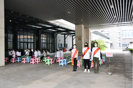 誌願者們引導同學們接種疫苗後要按(àn)照要求完成留觀