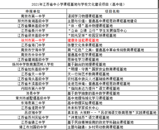 徐州一中“健康體適能課程基地”入選省高中課程基地(dì)建設項目
