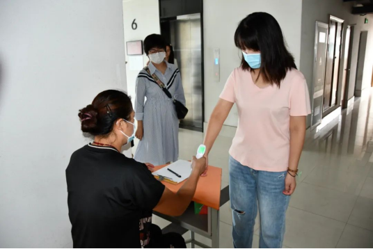 校門口查驗體溫,健康碼和行程碼提前一天已經提(tí)交班主任(rèn)審(shěn)核過,方可入校。