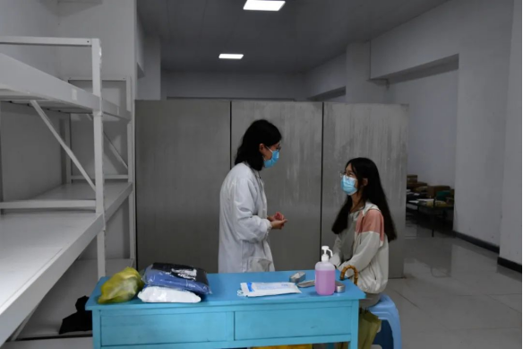 在入校晨檢環節中,發現一例體溫異常的學生,立即上報校醫,由專人將(jiāng)其由(yóu)應急通道帶到臨時(shí)留觀室,再次測量體溫,並詢問流行病學史,如體溫異(yì)常,做好相應記錄並聯係家長送至定(dìng)點醫院進一步治療。
