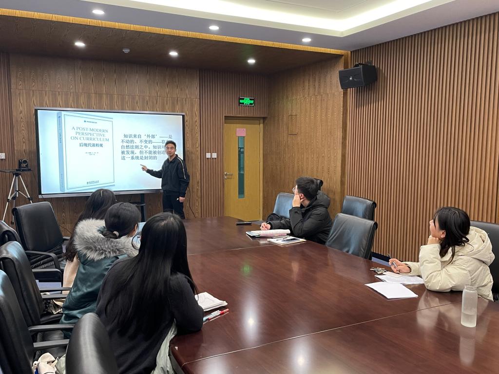 隨後,新任教師就徐州市新教(jiāo)育(yù)實驗所列書目的閱讀心得展開了交流。交流會由思想政(zhèng)治(zhì)組趙碩老師主講,他分享的是《後現代課程觀》閱讀體會。美(měi)國(guó)教育學家小威廉·E·多爾從發展(zhǎn)、對話、探究、轉(zhuǎn)變的過程的角度來界定後現代課程。後(hòu)現代課程(chéng)是開放的,需要挑戰(zhàn)、幹擾和分裂,其目標既不是精確的也不是預先設(shè)定的,而(ér)是一般(bān)性的、生成性的,鼓勵創造(zào)性的、互(hù)動的轉化(huà)。因此,每一(yī)個實踐者都應是課程的創造者和開發者,而不(bú)僅僅是實施者。後現(xiàn)代課程(chéng)中教師所發揮的作用應是“平等中的首席”,要“通過對話(huà),促使方法、程序和價值從生活經(jīng)驗(yàn)中養成”。
