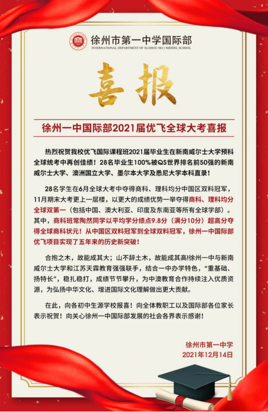 徐州一中國際部(bù)2021屆優(yōu)飛全球大考喜(xǐ)報