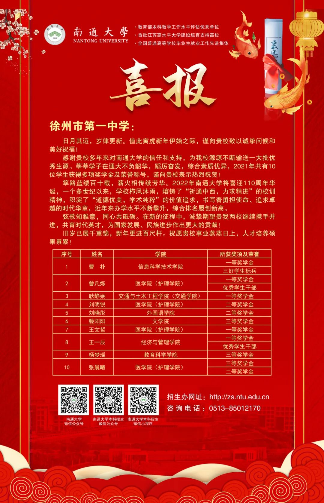 南通大學喜報