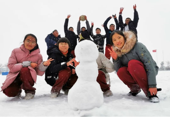 操(cāo)場上的美術課,學生(shēng)製作雪雕