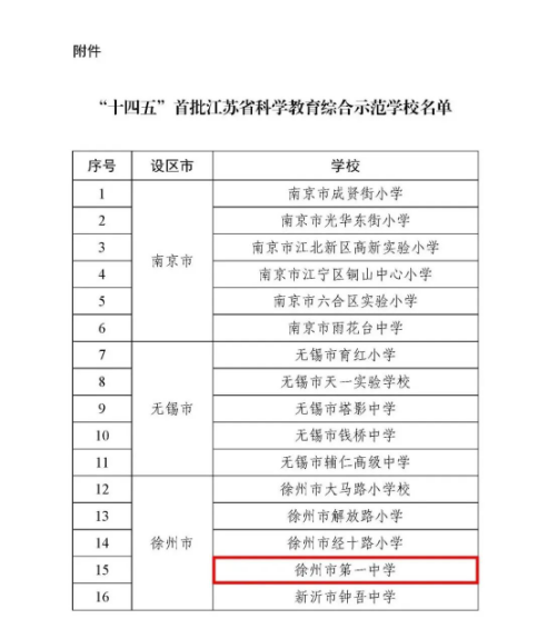 近日,省科(kē)協、省教育廳公(gōng)布了“十四五”首批江蘇省科學教育綜合示範(fàn)學校名單徐州一中順利通過評審