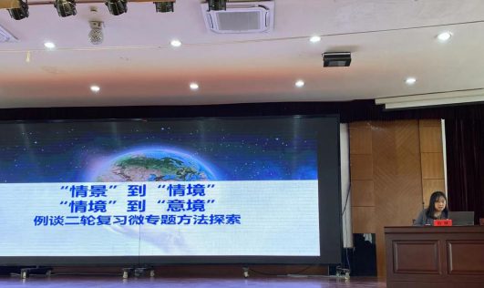 近日,我校地理學科組白璐老師在市高三地理教(jiāo)學(xué)研討會上做題為《“情(qíng)景”到“情境” “情境”到(dào)“意境”—例談二(èr)輪複習微專題方法探索》的經驗交流。