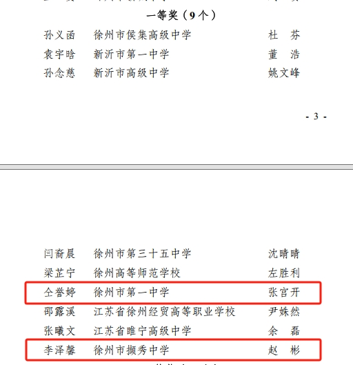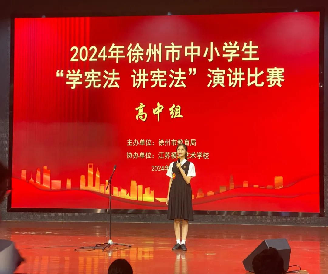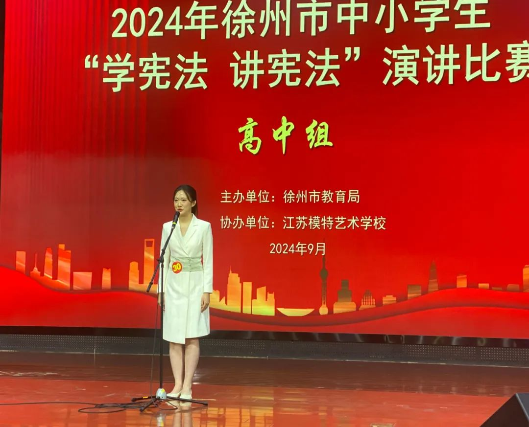 9月7日,由徐州市教育局主辦的2024年徐州市(shì)中小學生“學憲法 講憲法”比賽在江(jiāng)蘇模特藝術學校舉(jǔ)行。徐州一中4名參賽學子,全部獲獎!胡楊榮獲法治素養競賽特等獎,仝譽婷、李澤馨榮獲演講比賽一等獎,任天冉榮獲法(fǎ)治素(sù)養競賽二等獎,趙彬、張宮開、王(wáng)燦、楊子龍榮獲優秀指導(dǎo)教(jiāo)師獎。
