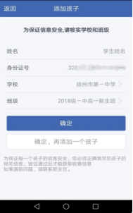 4. 填(tián)選完(wán)畢,確保無誤(wù)後確定,孩子綁定成(chéng)功。