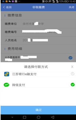 6、選擇付款方式(微信(xìn)),點擊確(què)定