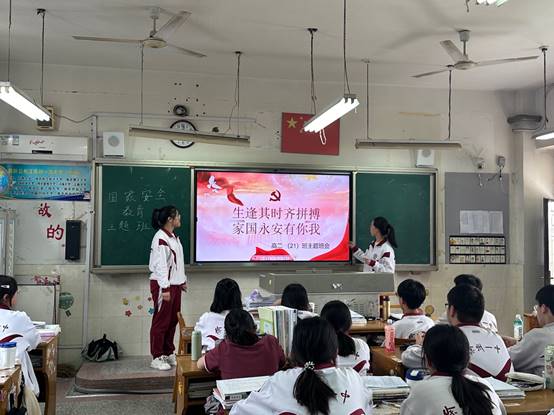 近日,高二(21)班開展了“生逢其時齊拚搏,家(jiā)國(guó)永安有你我”主題班會活動,幫助同學們了解國家安全相關知識並樹立維護國家安全意識。