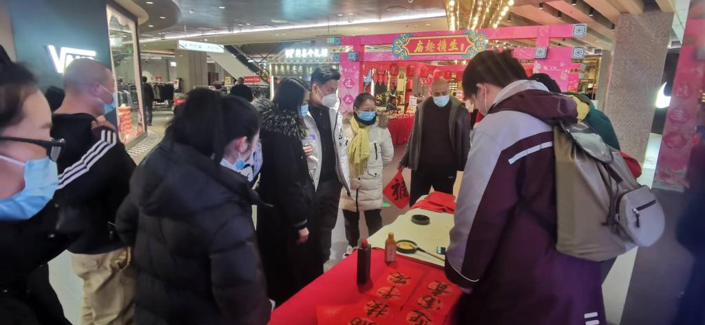 1月18日下午(wǔ)14:00,誌願者們(men)提(tí)前來到金鷹布置寫春聯送春聯現場。