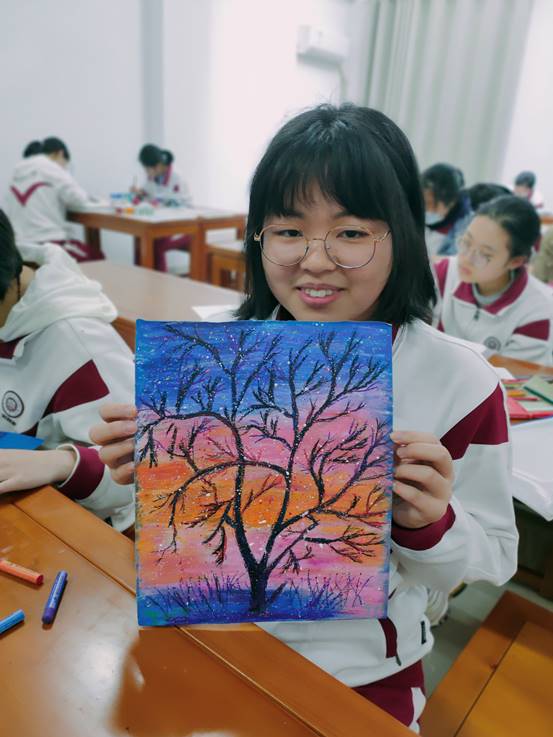 學生在前期社團活動中(zhōng)積極主動(dòng)參與,在課(kè)餘時間(jiān)盡情釋放對繪畫的熱愛,呈現對青(qīng)春的詮(quán)釋,同學們甚至會利用點點(diǎn)滴滴的課餘時間繼續完成(chéng)社團活動中沒有收尾(wěi)的畫作,在校園中讓鑒賞美(měi)創造(zào)美的能力與身心(xīn)健(jiàn)康、學業成長共生共進。