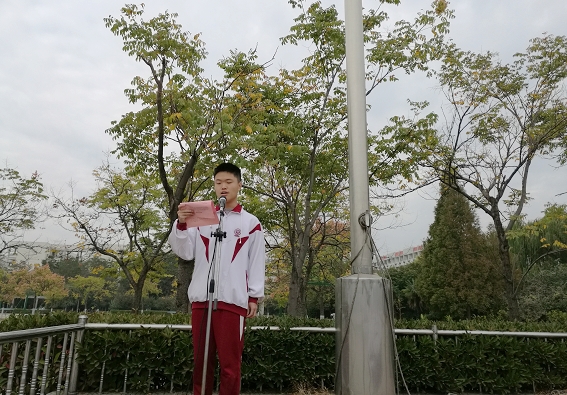 高三(22)班郭子興(xìng),2018年9月獲全(quán)國奧林匹克化學競賽省級賽區(qū)一等獎,以(yǐ)理論第3,實(shí)驗第11的成績入選(xuǎn)江蘇省省隊。2017年高二時獲得化學(xué)競賽省級賽區二(èr)等獎(江蘇省一等獎),2018年1月和8月分別參加了北京大學的寒、暑假課堂。曾在班裏擔(dān)任班長(zhǎng)一職,熱愛集體,團結同學,是(shì)老師的好助手(shǒu),同學的好(hǎo)夥伴,他勤奮學(xué)習,不斷爭取突破自己,奮勇(yǒng)爭先,在2018年4月被評為“江蘇省三(sān)好學生”。本周他又將啟程奔赴集訓隊,迎接下一輪(lún)挑戰。下麵有請郭子興同學做國(guó)旗下講話。