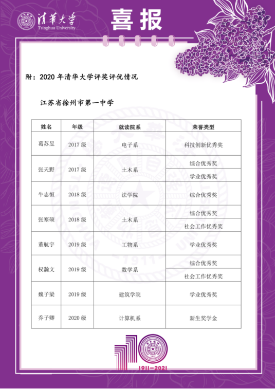 清華大學發來賀信(xìn),表彰徐州一中這些優秀畢業生