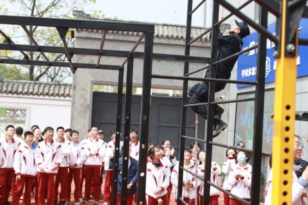 (大(dà)郭莊(zhuāng)派出所民警向學(xué)生展示(shì)體(tǐ)能訓(xùn)練)