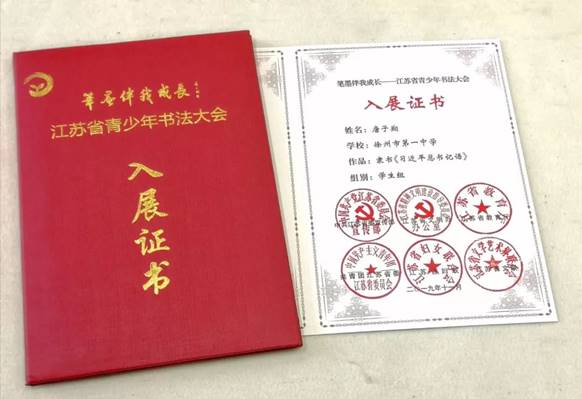 日前,由中共(gòng)江(jiāng)蘇省委宣(xuān)傳部、江(jiāng)蘇省文明辦、江(jiāng)蘇省教育廳、共青團(tuán)江蘇省(shěng)委、江蘇省婦聯、江(jiāng)蘇省文聯共同主辦的“筆墨伴我(wǒ)成長”江蘇省青少年書法大會,共征集到來自江蘇全省各地的作品25000餘幅,經初評、複評、終評,最終(zhōng)選定170幅學生(shēng)入展作品,我校高(gāo)二(8)班唐子翔同學(xué)的書法作品《習近平總書記語》名列其中。