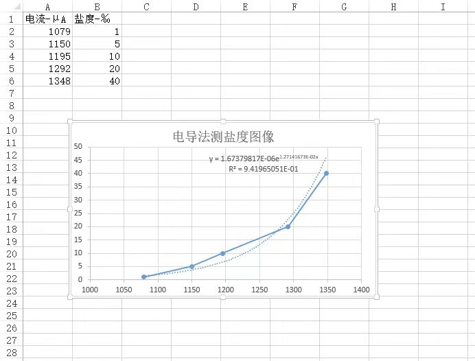 不同鹽度對電流大小的(de)影響在下圖中,由下圖表格可看出,不同鹽(yán)度的海水(shuǐ)會對電流表(biǎo)示數產生不同的影響。不同鹽度下電流表示數見下(xià)圖,電流表(biǎo)示(shì)數(shù)分別(bié)是1079、1150、1195、1292、1348微安。至於為什麽電流表示數在不(bú)斷減小,因為其發生了非常緩慢的電解反應,其時間過長、電壓過大(dà)都會導致其(qí)示數變小(xiǎo)。