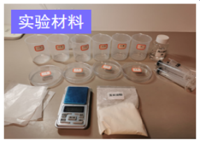 (1)材料準備:實驗設置4個組別,每個組別中準備(bèi)水20mL、澱粉(fěn)1.5g白醋1mL。依次改變(biàn)4個(gè)組別中使用的甘油用量為0mL、0.5mL、1mL 和2mL,編(biān)號1、2、3和4。