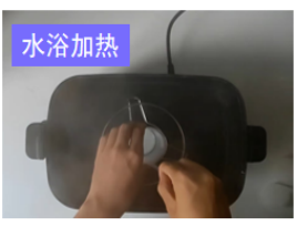 加入50onL清水後,將裝有混合物的燒杯置於電煮鍋中加熱(rè)至混合液變(biàn)得透明 |