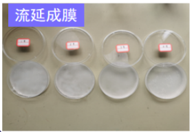 (5)成膜評價:選擇所(suǒ)關注的因變量,是否成膜、揭膜完整性。外觀特點延伸性能、膜厚、阻水性等指標依次對不同(tóng)組別的澱粉膜進行性能評價。