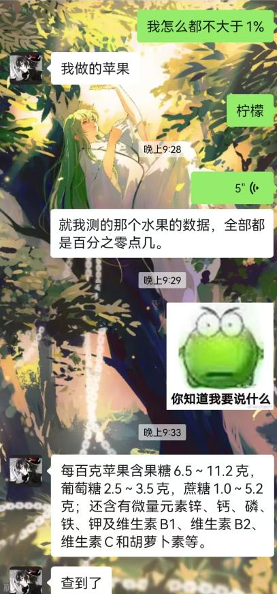 其中,組員們(men)思維活躍,想出了測量咖啡和檸檬。平常味苦的咖啡,葡萄糖含量會如何呢?味道很酸(suān)的檸檬,吃起(qǐ)來並無甜味,也會含葡萄糖嗎?對於這些問題,組員(yuán)們帶著好(hǎo)奇心展開探究,咖啡含2.17%,檸檬有6%,日常生活中,有的食物不甜但含“糖”。