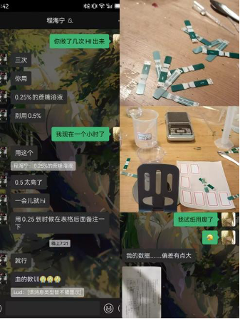 作為組內開展的第一次實驗,操作難免出現失(shī)誤和困難,比如會不小心(xīn)計時超過六(liù)十秒,稀釋時需要量取、計算(suàn),比對比色卡時對(duì)於顏色的(de)判斷組員產生分歧。但這些困難組員都慢慢適(shì)應,一(yī)一克服,有時需要重做,大家都表現出耐心。