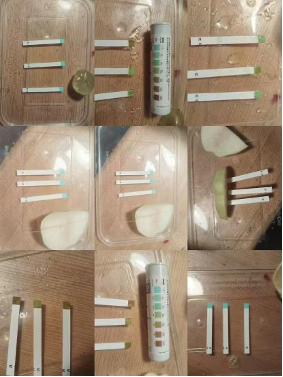 我(03)在第一次使用0.5%溶液時直到120分鍾(zhōng)時都出現HI。為了排除(chú)一(yī)些根源上的失誤(wù),我去重新配置了蔗糖溶液,並且確保每(měi)次測量實驗用品不影響結果。我開始了第二次對0.5%溶液的測(cè)試,但是結果不盡(jìn)人意(yì),依然持續出現(xiàn)HI,此時試紙已經剩的不(bú)多(duō)了,一次次的(de)失敗使我心情沮(jǔ)喪,並且十分擔心。到底是哪個環節出了問(wèn)題(tí)?