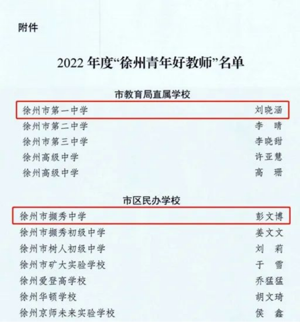 日前(qián),市教育局公布了2022年度“徐州青年好教(jiāo)師”名單(dān),經個人申報(bào)、學校推薦、市級複核等環節,徐州一中劉曉涵、彭(péng)文博兩位老師成(chéng)功入選!