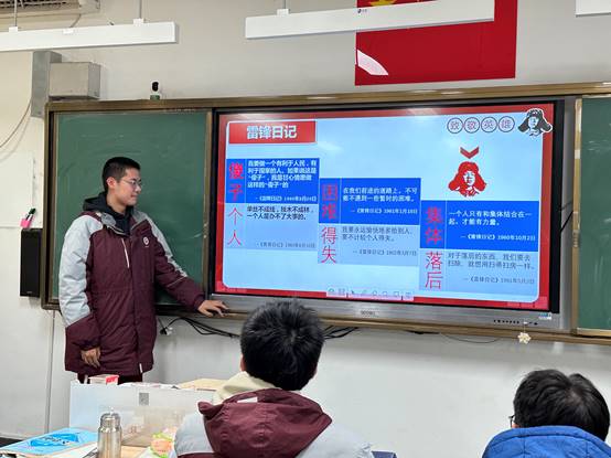 本次主題班會由楊子劍同學主持。活動開始,班主任仝老師播放雷鋒事跡的短片,介(jiè)紹雷鋒同誌(zhì)的先進事跡和高尚品德。雷鋒同誌(zhì)在生前(qián)無私奉獻、樂於(yú)助人、勤儉節約、艱苦奮鬥的品質,深受人(rén)民群眾的(de)尊敬和愛(ài)戴,他的事跡激勵著一代又一代人為社會主義事業獻(xiàn)身(shēn)奉獻。